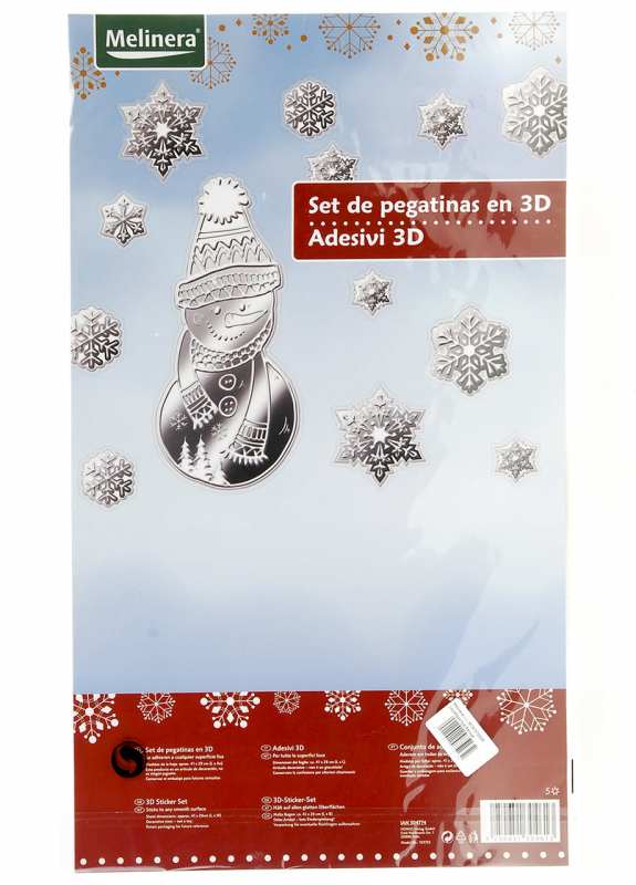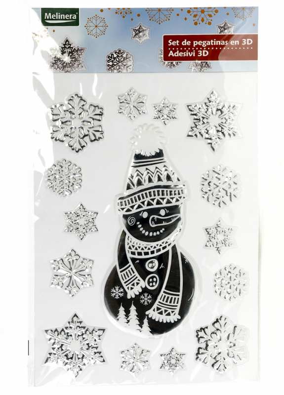 Новогодний набор наклеек 3D "Снеговик", серебристый-белый