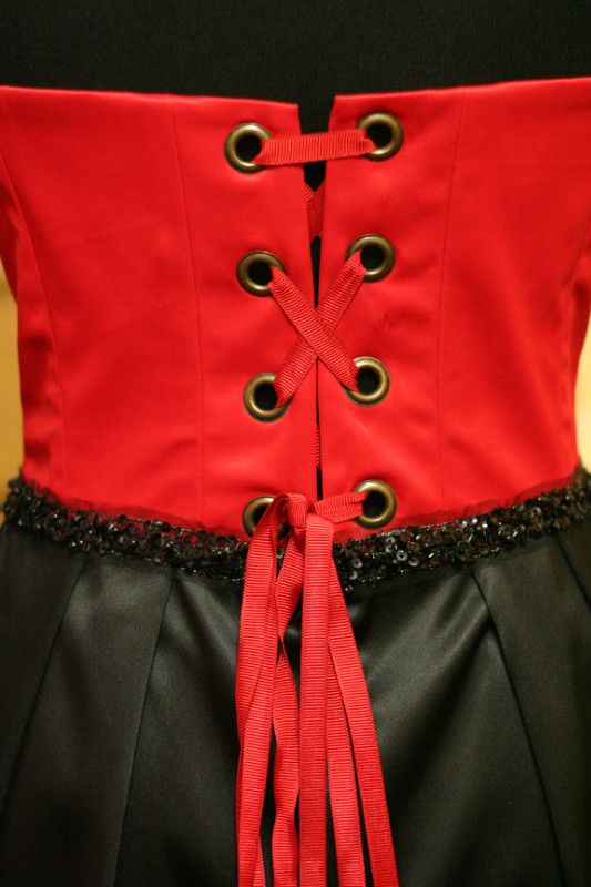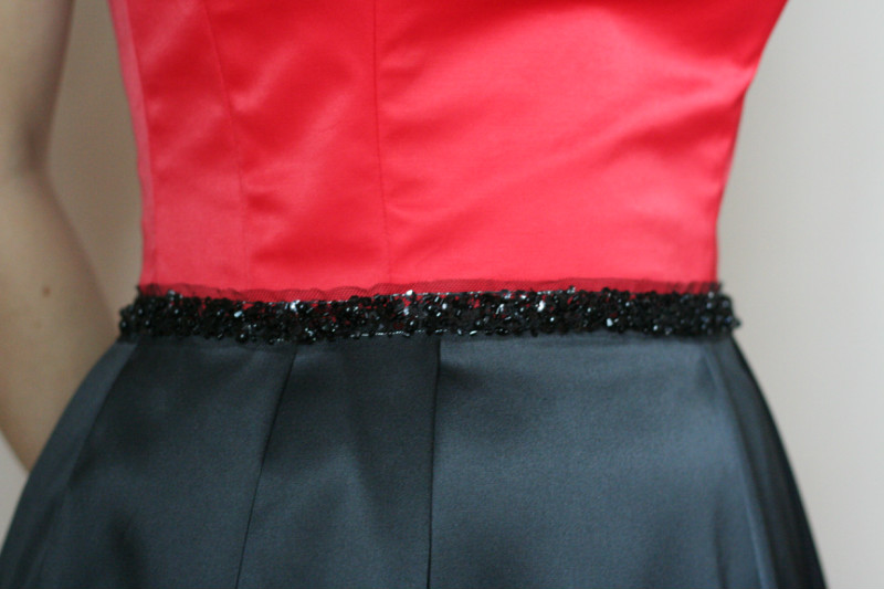 Красное и черное – возможно, вечер в этом платье станет для Вас судьбоносным? Юбка-тюльпан отделена от корсета поясом из бисера. Корсет на шнуровке сзади.