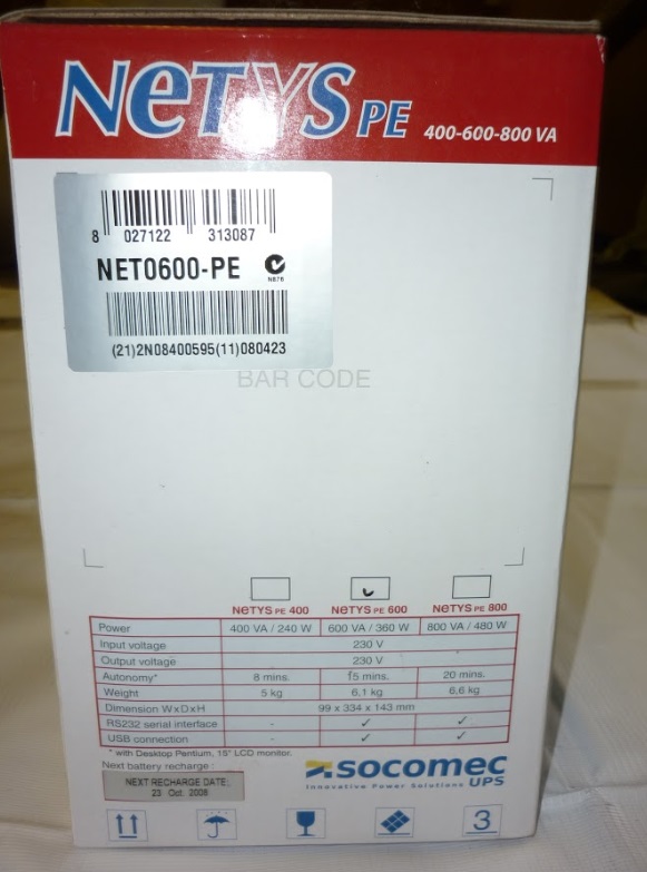 ИБП Socomec NETYS PE 600 (360 Вт) RS232, USB. Время работы от батарей при 75% нагрузке: 15 минут - 350 гр;