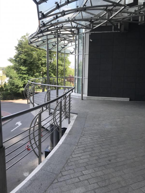 Сдается в аренду уютный мини-офис на Оболонской набережной в ЖК "Парус", на 1 этаже с отдельным входом. Фасад здания.