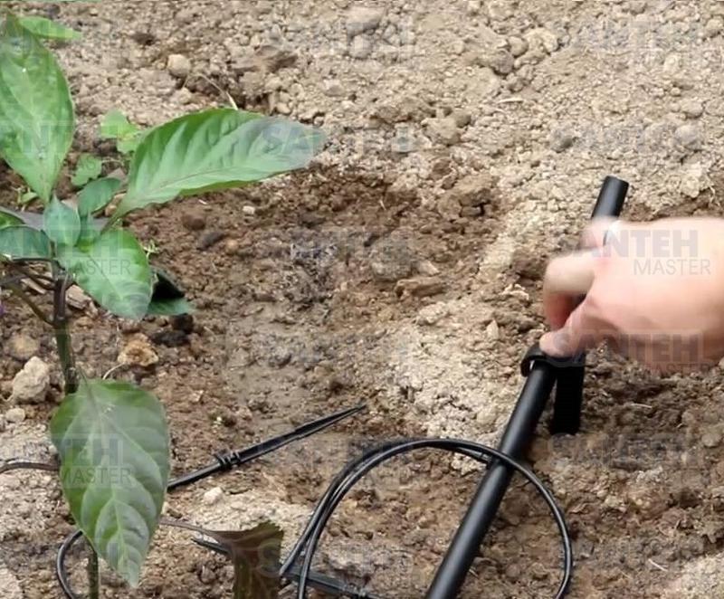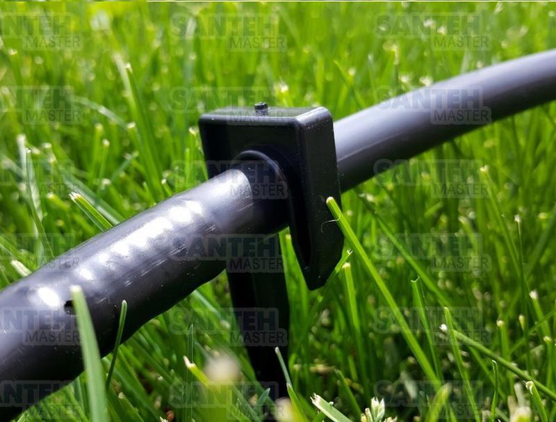 Шпилька-держатель для капельной трубы используется для монтажа системы орошения, она предназначена для фиксации трубки к поверхности земли. Погружаясь в почву, шпилька одновременно прижимает трубу и не дает ей свободно перемещаться. Шпилька-держатель незаменима, так как трубка при нагреве может менять свое положение и сдвигаться, вследствие чего полив будет проходить мимо корневой системы растения.
