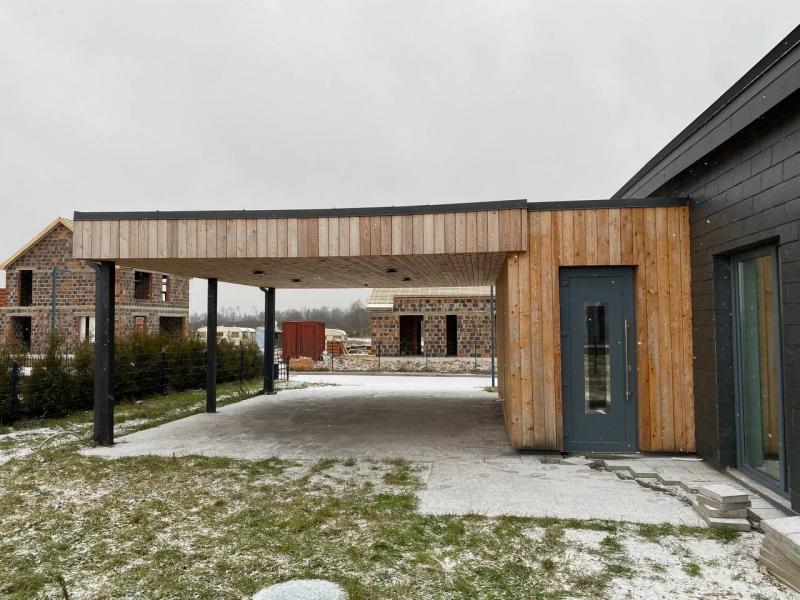 - фасад: финская термомодифицированная сосна (Thermory) и итальянский сланец (CUPA pizarras),