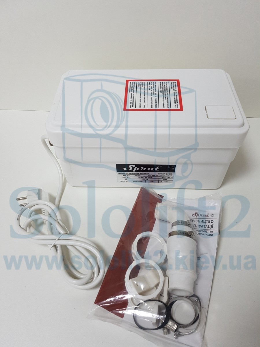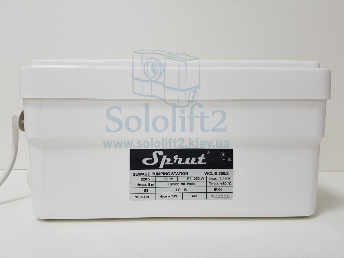 Канализационные установки Sprut Wclift 250/2 откачивает нечистоты из ванной комнаты в общую канализацию. Допустимо до 2 подключений (например: унитаз и ванная). Возможно использовать также 1 подключение - второй выход необходимо заглушить. Имеет встроенный режущий механизм. Максимальная температура жидкости для перекачивания 35 С. Насос изготовлен из термопласта. Мощность установки 0, 25 кВт, работает от сети 220 В, производительность 5, 1 м3/час, а напор 5 метров. Герметичный корпус (приемная емкость) из пластика, входные патрубки DN40, выходные патрубки DN32, наличие сетчатого фильтра и режущего механизма, обратный клапан на выходном патрубке, автоматическое реле уровня, воздушный клапан с угольным фильтром в крышке корпуса установки, вал из нержавеющей стали, укомплектован шнуром питания. Гарантия от производителя 18 месяцев. Страна производитель - Китай.