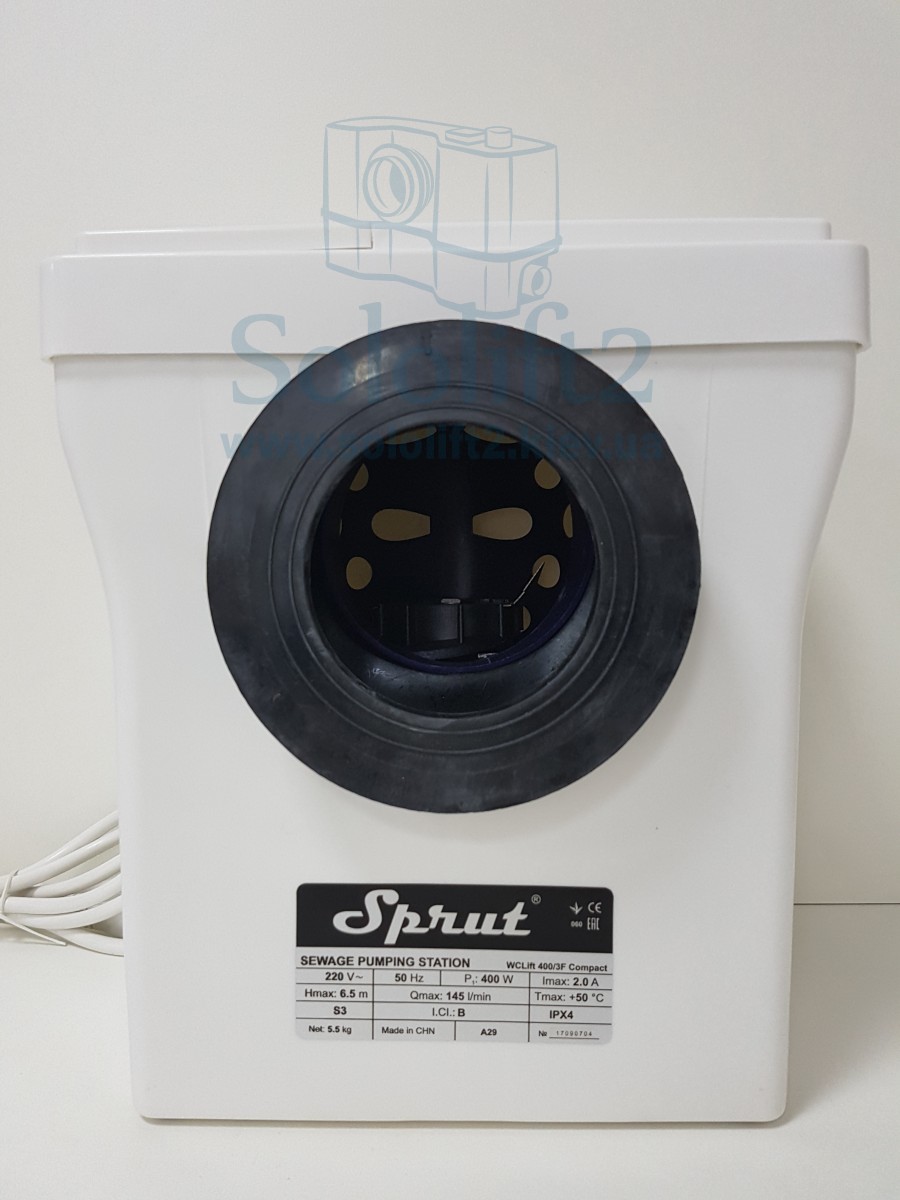 Канализационная установка Sprut WCLift 400/3F Compact со встроенным насосом и режущим механизмом используется для перекачивания бытовых и сточных вод из туалетов, душевых кабинок, умывальников, стиральных и посудомоечных машинок при отсутствии основного подвода слива к центральной канализации.