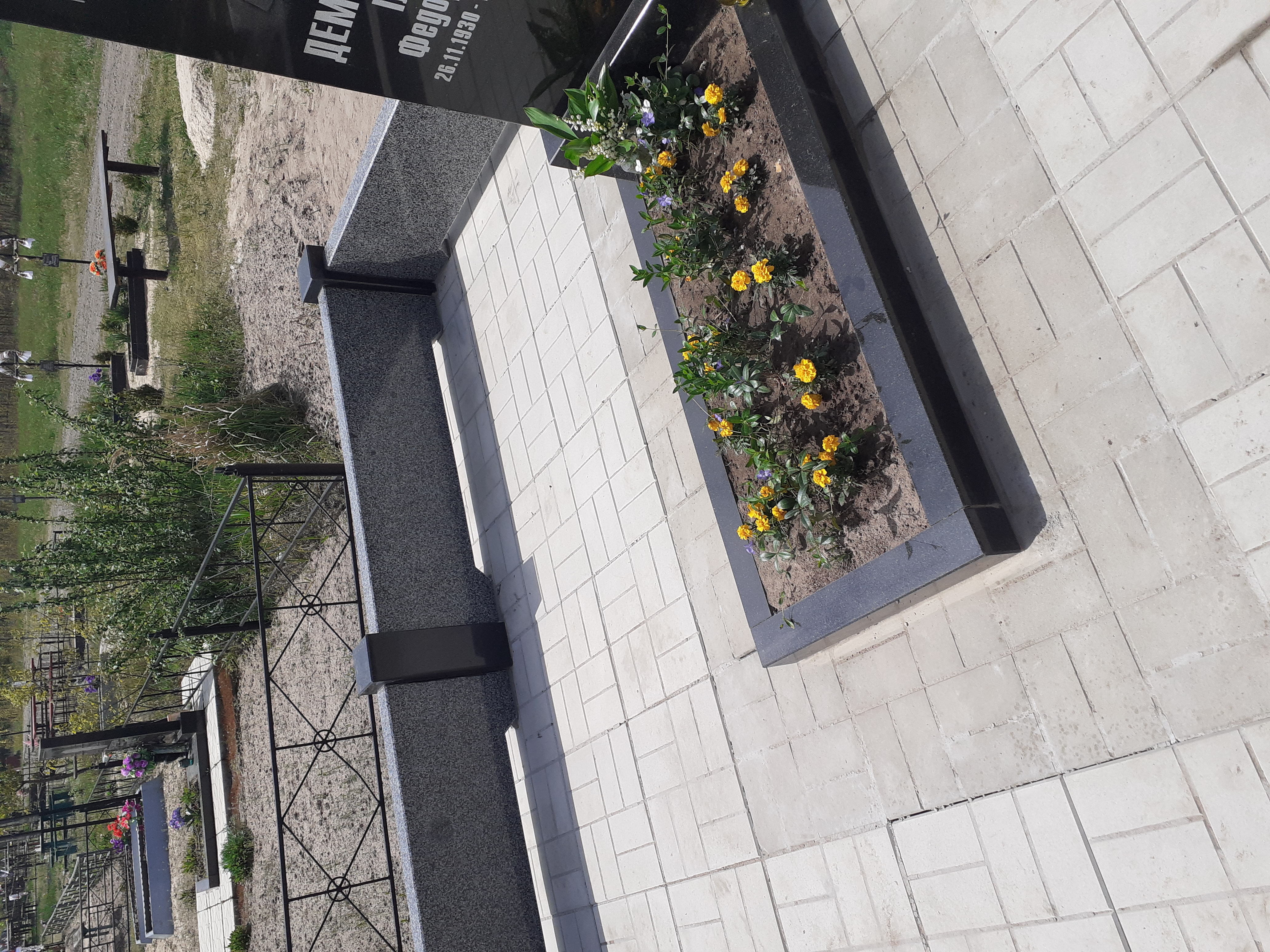 Установка поперечної балки квітника проводиться на балку для перекриття могил, розташована біля ніг за допомогою цементного розчину М - 500. Положення квітника вивіряється за будівельним рівнем.