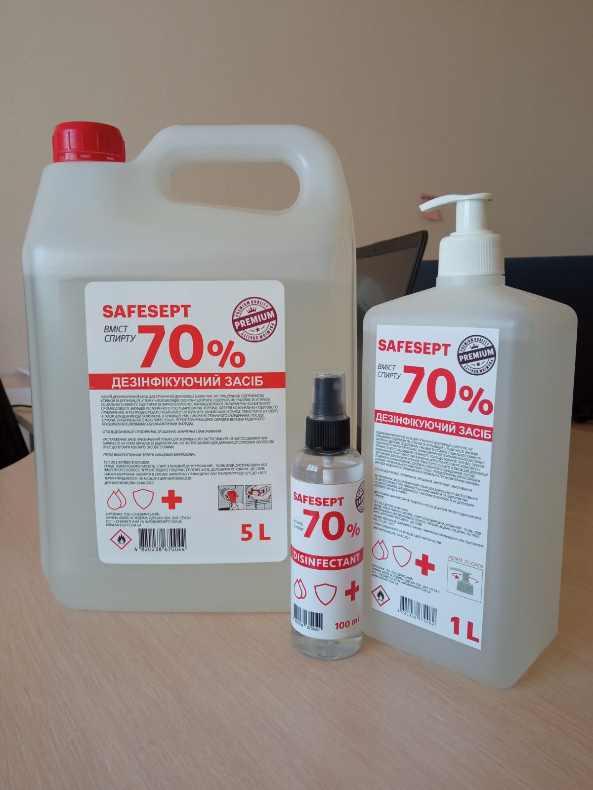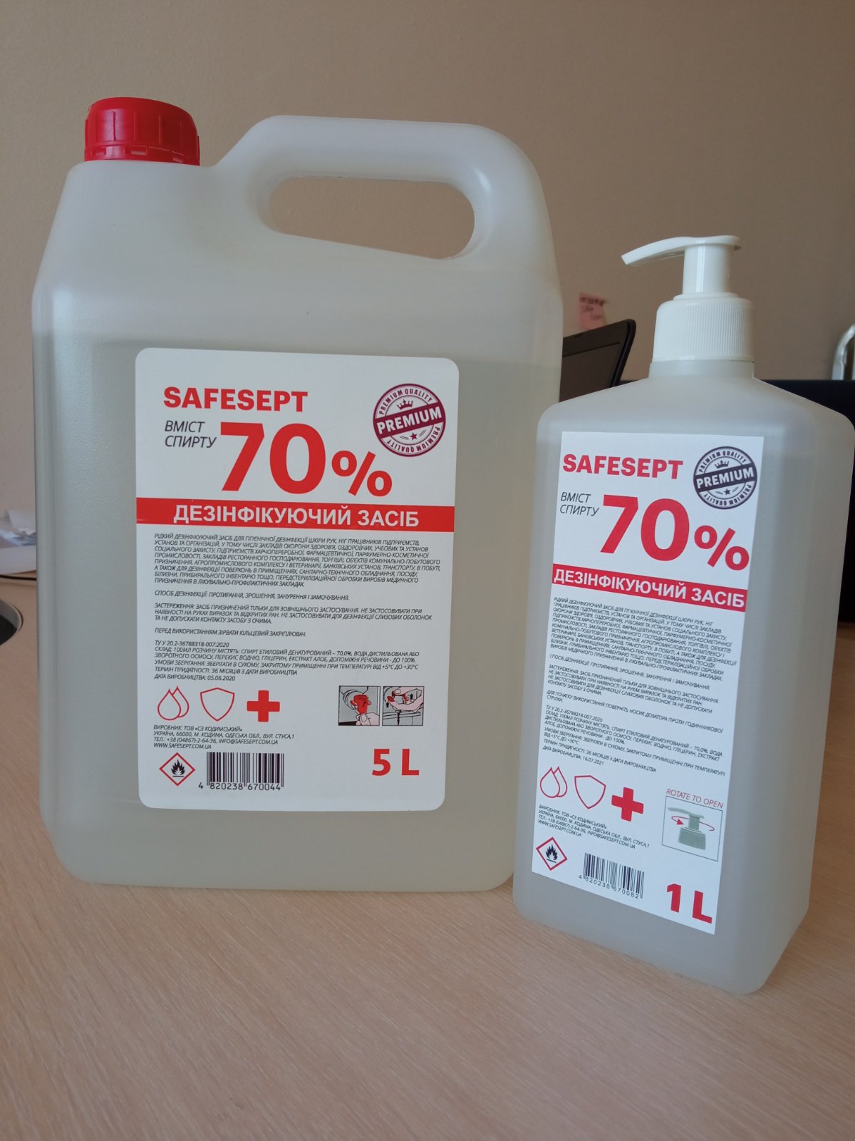 Купить антисептик с содержанием этилового спирта 70% под ТМ «SAFESEPT».