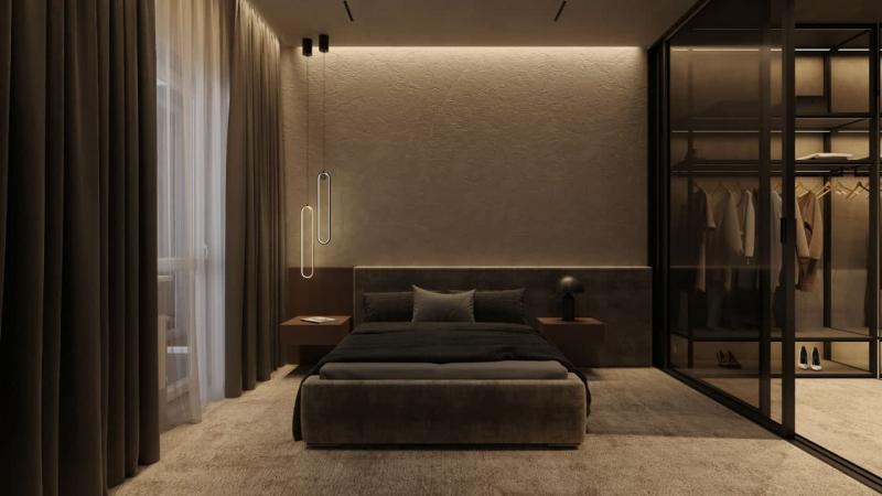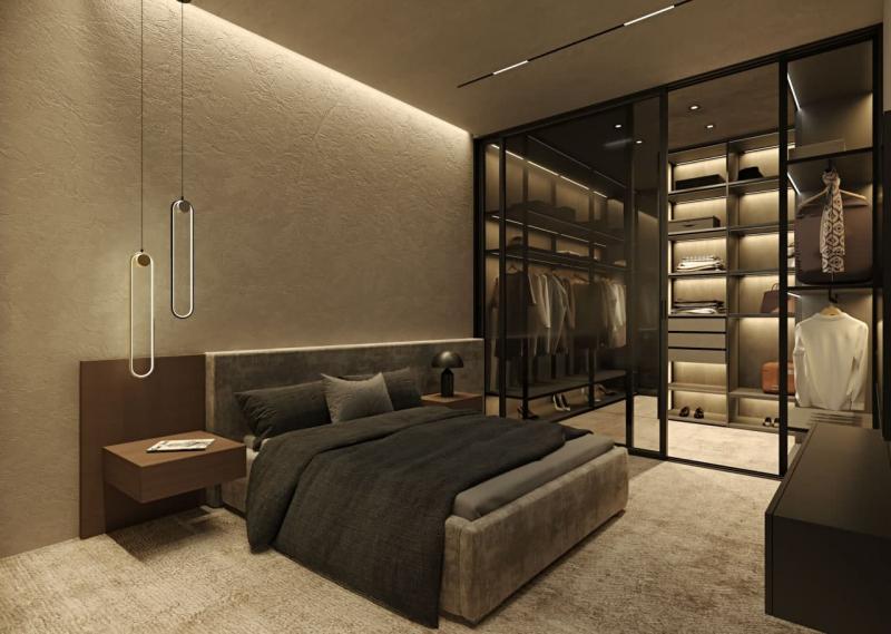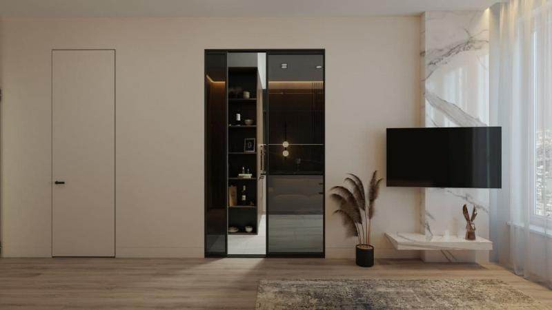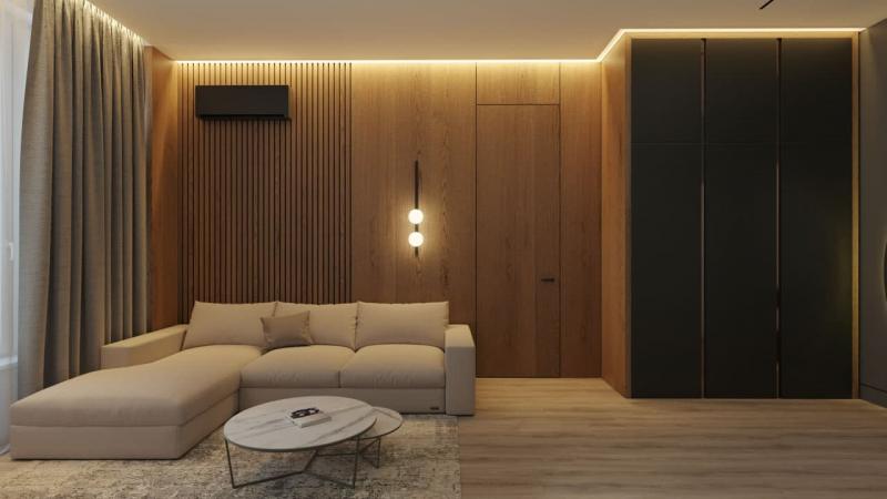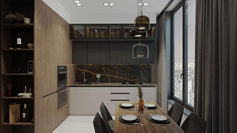 Кухня студио + 2 спальни, площадь квартиры 55 м2.