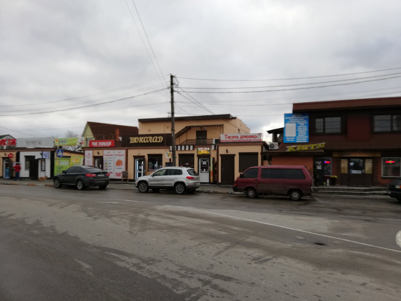 Постоянный поток людей. Проходное место, также видно для проезжающих автомобилей. Рядом расположен: приватбанк, школа, садик, дом культуры, парк, жилой массив, клиника. Также в поселке есть такие магазины как Фора, Аврора.