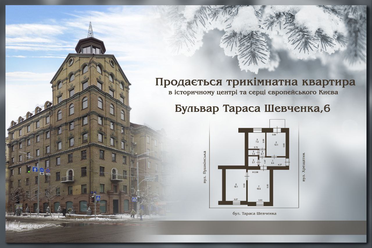 Продається 3к квартира у центрі міста Києва. Біля Бессарабської пл. Початок бульвару Шевченка, дім 6.