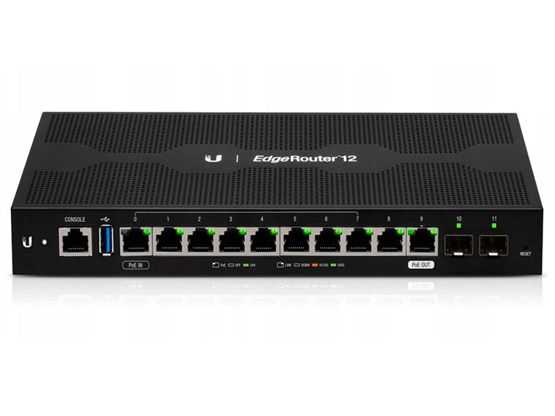 Веб-магазин продукции Ubiquiti предлагает приобрести новый 12-портовый маршрутизатор Ubiquiti ER-12. Технические характеристики маршрутизатора ER-12: максимальное энергопотребление 20 Вт (без раздачи PoE), 4-ядерный процессор MIPS64 1 ГГц, ОЗУ 1 ГБ DDR3 RAM, 10 портов 10/100/1000 Мбит/с и 2 SFP порта 1 Гбит/с, производительность Layer 3, вес 700 г, размер 268.1х136.5х31.1 мм и возможно крепление в стойку при помощи дополнительных креплений. Быстро доставляем маршрутизаторы ER-12 по всей Украине.
