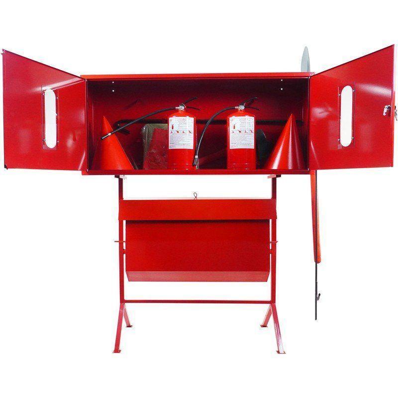 - Пожежні стенди з відкритим щитом. Компактне рішення для підприємства, що включає щит, комплект інструментів та ящик для піску. Ціна: 5286 грн з ПДВ.