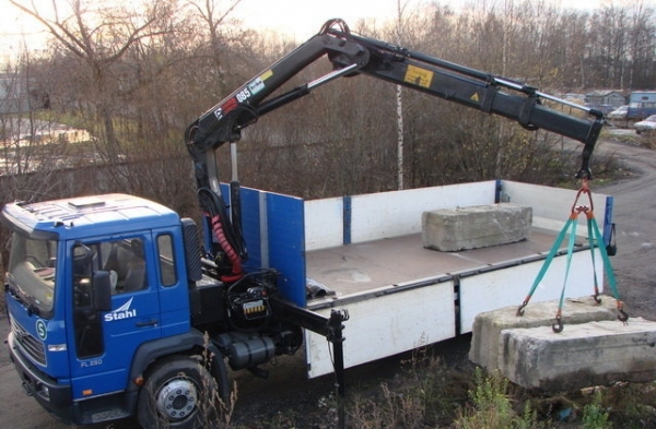Аренда крана манипулятора для грузоперевозок по Киеву и области. Кран манипулятор на базе Volvo, грузоподьемность - 6 тонн, длинна кузова - 6 м.