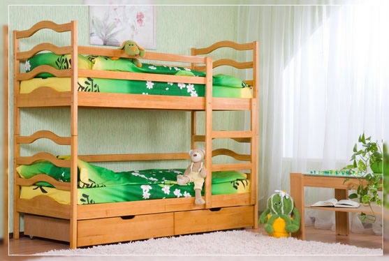 Кровать-трансформер может превратиться из двухъярусной в две полноценные одинарные кровати: одна - для деток ясельного и младшего школьного возраста, вторая- для подростков и деток старшего возраста. Кровать представлена в двух цветах ольха и орех, в комплектацию входят ламели (каркасы под матрасы)