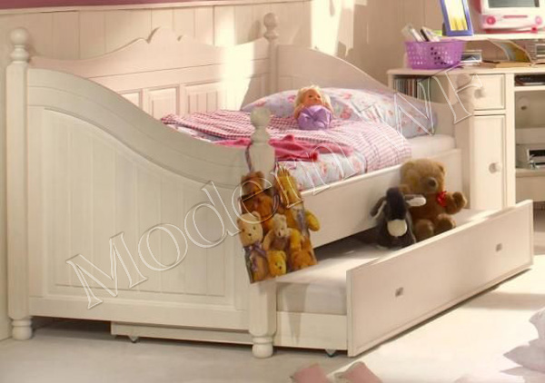 Возможна установка защитного бортика (съемный). Ящик для белья, игрушек на металлических направляющих (телескопах). Дно ящика фанера. Ящик окрашен в цвет кровати, так же внутри ящик разделен на две части для укрепления конструкции. Доп. кровать выдвигается на 6 резиновых колесиках.