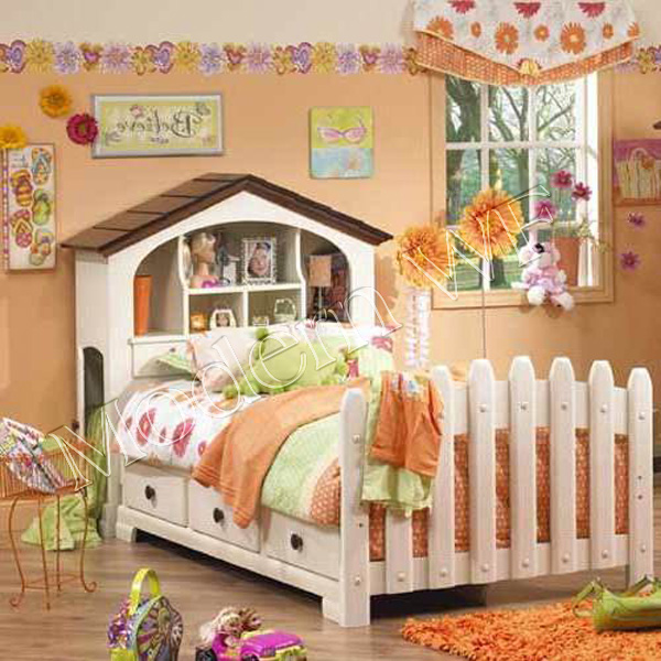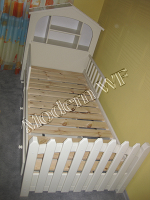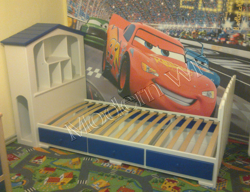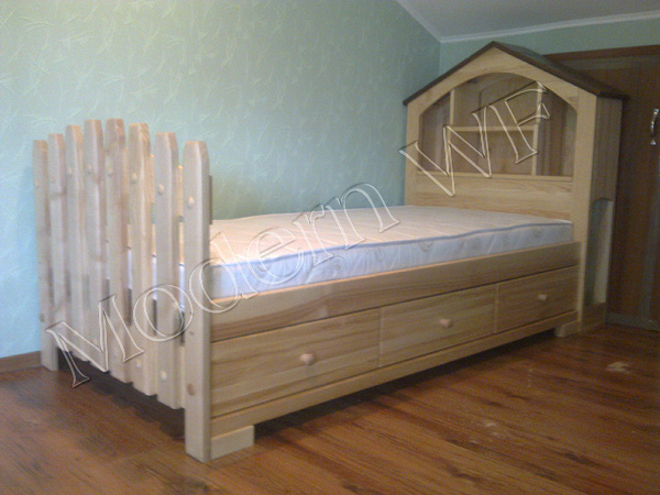 Кровать оснащена тремя ящиками для белья, игрушек на телескопических направляющих.