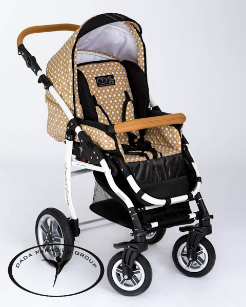 - коляска Dada Paradiso Group (DPG) Carino имеет задние колеса большего диаметра чем передние колеса для лучшей проходимости коляски в сложных дорожных условиях;