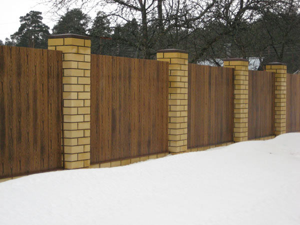 Заборы из профнастила эта наиболее востребованный вид ограждений. К преимуществам профнастила относят его доступность и экономичность в использовании, относительно небольшой вес, простоту монтажа, а также долговечность.