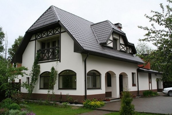 Металлочерепица – кровельное покрытие, представляющее собой оцинкованные стальные листы с определенным профилем, верхняя часть которых покрыта слоем полимера. Внешне она напоминает натуральную черепичную кровлю, только гораздо легче и прочнее. Металлочерепица получила широкое распространение в области загородного коттеджного строительства благодаря долгому сроку службы (до 50 лет) и оптимальному соотношению «цена-качество».
