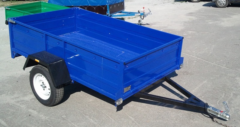 Прицепы в Киеве пр-т Московский 26А, удобный прицеп на немецкой рессоре грузоподъемностью до 1000кг (категория В). Увеличенные размеры прицепа 1.3 х 2.2м с высотой борта 45см, кронштейны для крепления груза, усиленные борта и рама, качественная порошковая покраска. Цена 5400грн с не открывающимся передним бортом. Модель с двумя открывающимися бортами - 5500грн. Документы входят в стоимость прицепа.