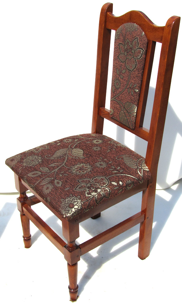 Стул из натурального выстоянного и сухого бука высокого качества подойдет как для частного дома, так и для ресторанов или кафе. Сдержанный и благородный дизайн коричневой обивки со светлыми цветами гармонично сочетается с использованной древесиной (можно выбрать различные цвета: бук, орех, темный орех, ольха, яблоня или бордо).