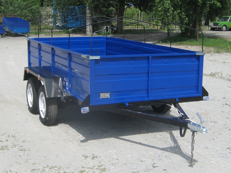Двухосный прицеп 3.0 х 1.5м и высотой борта 55см, который усилен профильной трубой, передний и задний борт открываются и легко снимаются. Грузоподъемность до 1500кг (категория В), на немецкой ступице KNOTT, рессорах ALKO и аммортизаторах ВАЗ. Цена 8800грн. Выполняем индивидуальные заказы на производство прицепов.