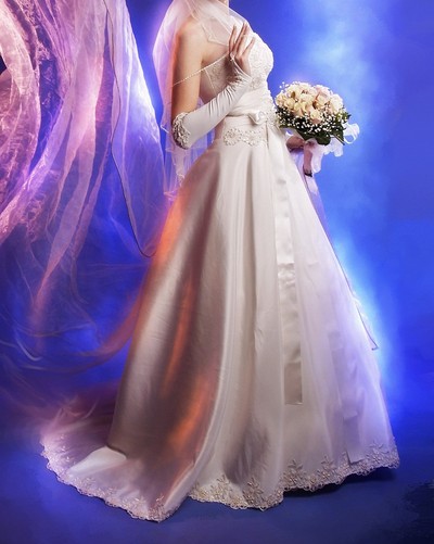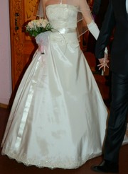 Продам шикарное свадебное платье.Одевалось Один раз на собственную свадьбу. Состояние превосходное. Не венчанное. Цвет – Шампань. Размер 44-46, но для точности нужно мерять. Сзади на скрытой молнии и на шнуровке. Шлейф платья небольшой, можно подстегивать, выглядит просто превосходно! к платью в подарок перчатки. Цена-1700грн тел. 099-22-66-178