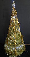 "Золотая ель 1, 8 м": высота - 1, 8м, провод - прозрачный ПВХ, кол-во светодиодов - 120 LED, напряжение - 24В, цвет - золотой, украшена игрушками. Цена - 1369 грн.
