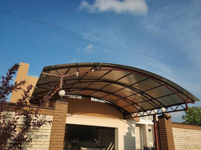 Замер, изготовление, покраска, доставка, монтаж навесов из черного металла и поликарбоната для автомобилей, террас, бассейнов, крыш. Возможна визуализация изделия. Производство собственное.