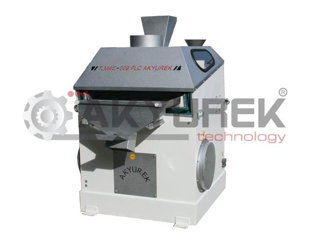 Работа камнеотделитела основана на принципе самосортирования продукта на фракции, отличающиеся удельным весом. Управление камнеотделитела (T.MAC-009-PLC)осуществляется с помощью программируемых логических контроллеров (ПЛК). Платформа камнеотделитела сверху закрыт крышкой с отверстиями для приёмно-питающего устройства, аспирационного патрубка и смотровых окон.Основной рабочий орган Камнеотделитела дека представляет собой металлическую сетку, натянутую на раму.