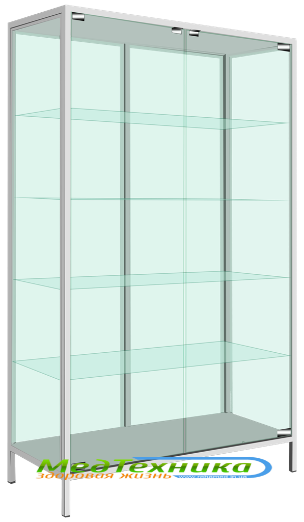 Стеклянно-металлическое исполнение шкафа предусматривает металлическую основу и заднюю стенку + стеклянные боковые стенки и дверцы. Полки внутри шкафа тоже стеклянные (допустимая нагрузка на каждую полку - до 2 кг). Двери фиксируются с помощью магнита.