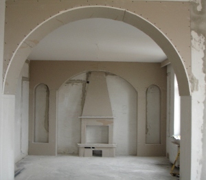 Конструкции из гипсокартона любой сложности: простенки, фальш-стены, арки, откосы, криволинейные элементы, потолки любых видов, простые, многоуровневые, натяжные, различных форм, стены, перегородки, арки, ниши, радиусные конструкции ниши с подсветкой