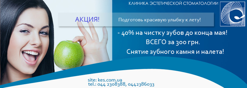 Акция! До конца мая - 40% на профессиональную чистку зубов! ВСЕГО за 300 грн.